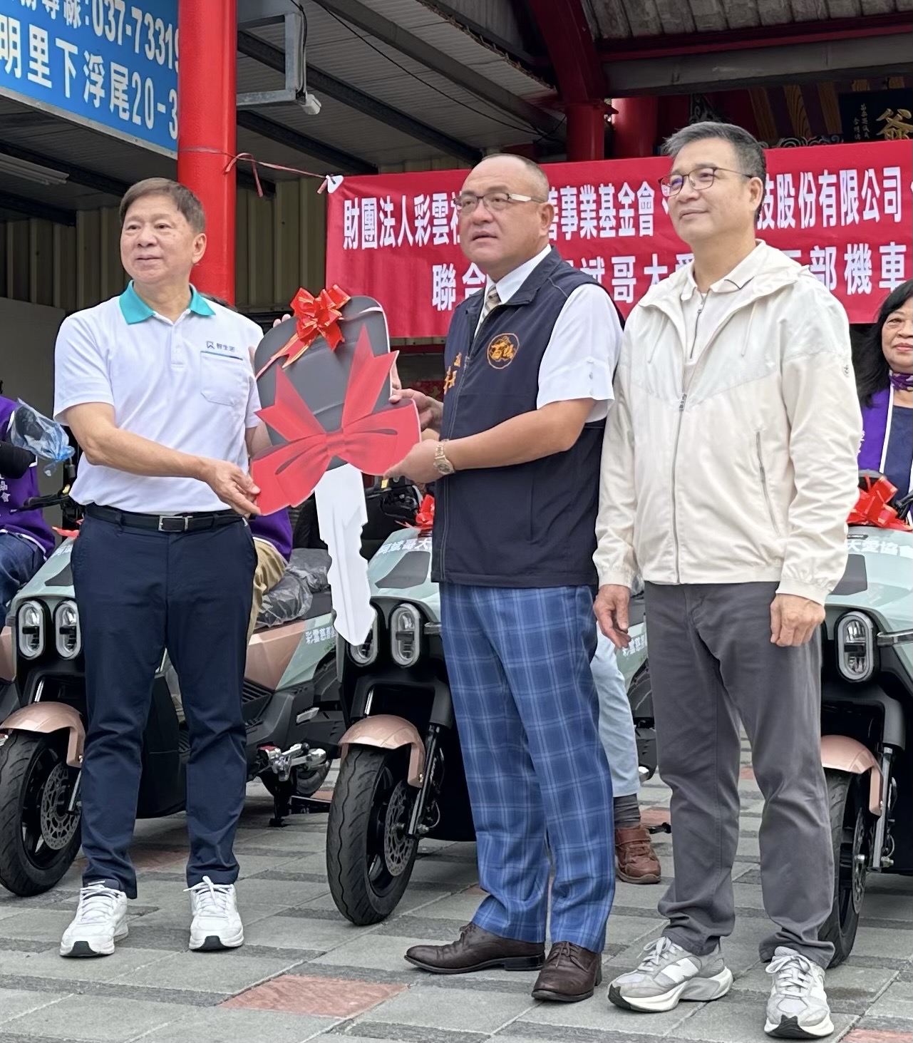 此次捐贈是三家單位再度攜手合作,展現持續投入公益的熱忱。儀式中,彩雲社會福利基金會代表將機車鑰匙交給創辦人李文斌議長手中,李議長表達誠摯感謝,並指出,這些新機車將成為志工送餐的得力助手,讓愛心服務更為順暢高效。